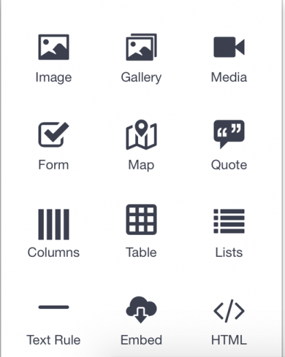 Blocks can be added to any section of the edit area. The image to the right is a sample of the blocks that can be inserted.